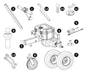 A special ball mount adapter provides a secure connection to prevent tipping while connected to your trailer. Interchangeable hitch balls come in 1 ⅞” and 2” diameters, compatible with most small trailers. The dolly includes two pre-installed rechargeable 12V lead acid batteries, boasting 9Ah of use.
